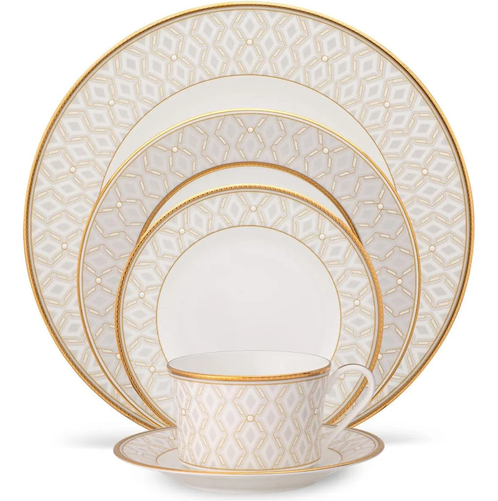 Moderno e elegante. com design em linhas finas de ouro com sutileza do cinza claro oferecendo um efeito sombreado que traz requinte à mesa.