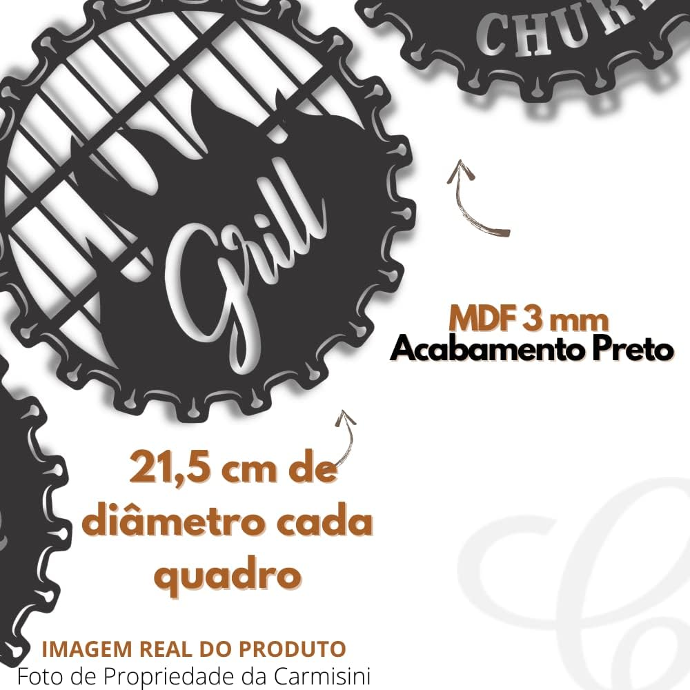 - Trio de Quadros em Mdf 3mm na cor Preta Cada Lar tem um cantinho especial onde vivemos ótimos momentos com a família e amigos, compartilhando histórias e experiências. Normalmente esses momentos vêm acompanhados de um churrasco, cerveja, música e muita alegria. Se você tem churrasco no sangue ou gosta de grelhar um pouco nos fins de semana, este Kit de placas é exatamente o que você precisa para criar um ambiente diferenciado. Use sua imaginação para criação de um espaço total