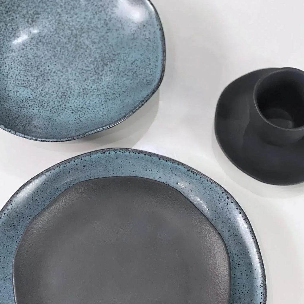 Nesta combinação a imensidão celeste salpicada de estrelas da linha se combina com a escuridão fosca e profunda da linha, resultando em um aparelho de jantar sofisticado e cheio de personalidade.